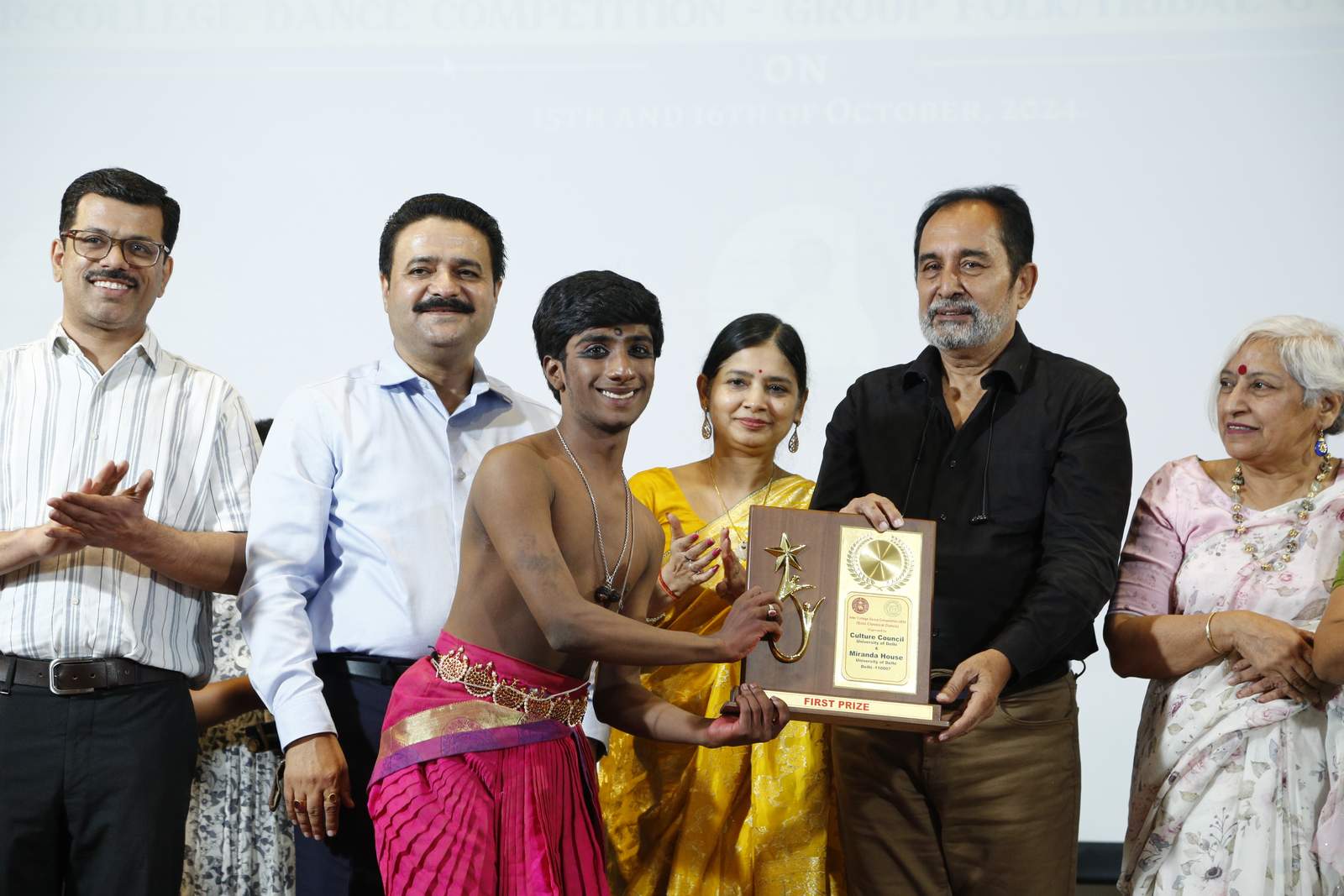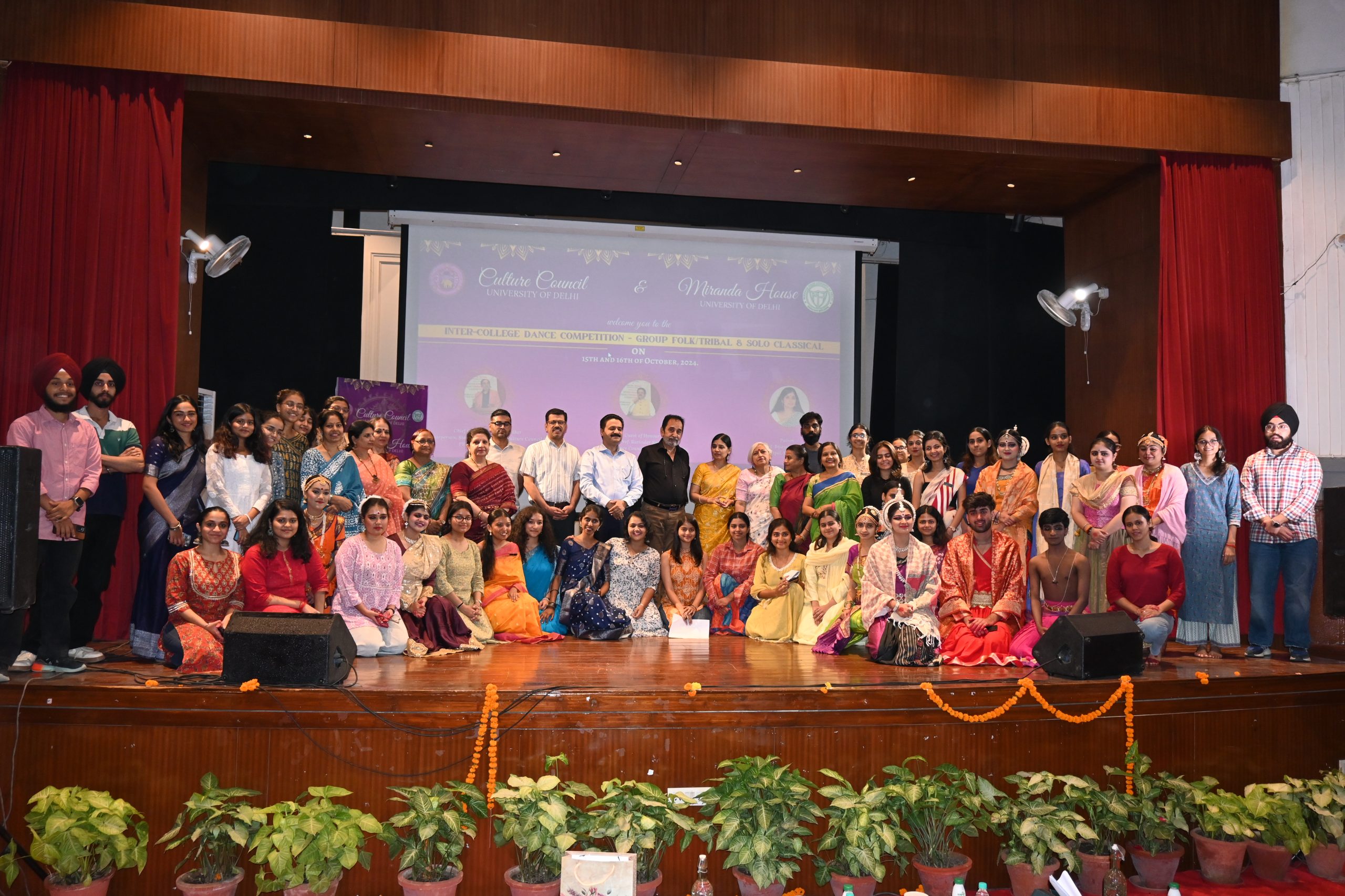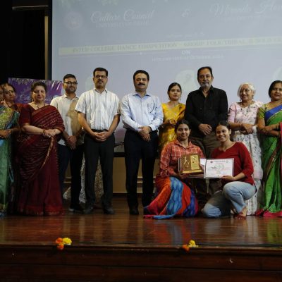 Under the joint initiative of the Culture Council, University of Delhi, and Miranda House, the Inter-College Folk and Ethnic Dance Competition was held at the Miranda House auditorium with enthusiastic participation from 17 teams in the group dance category and 28 participants in the solo dance category. The event showcased folk and ethnic dance forms from various regions of India, reflecting the country's rich cultural diversity.