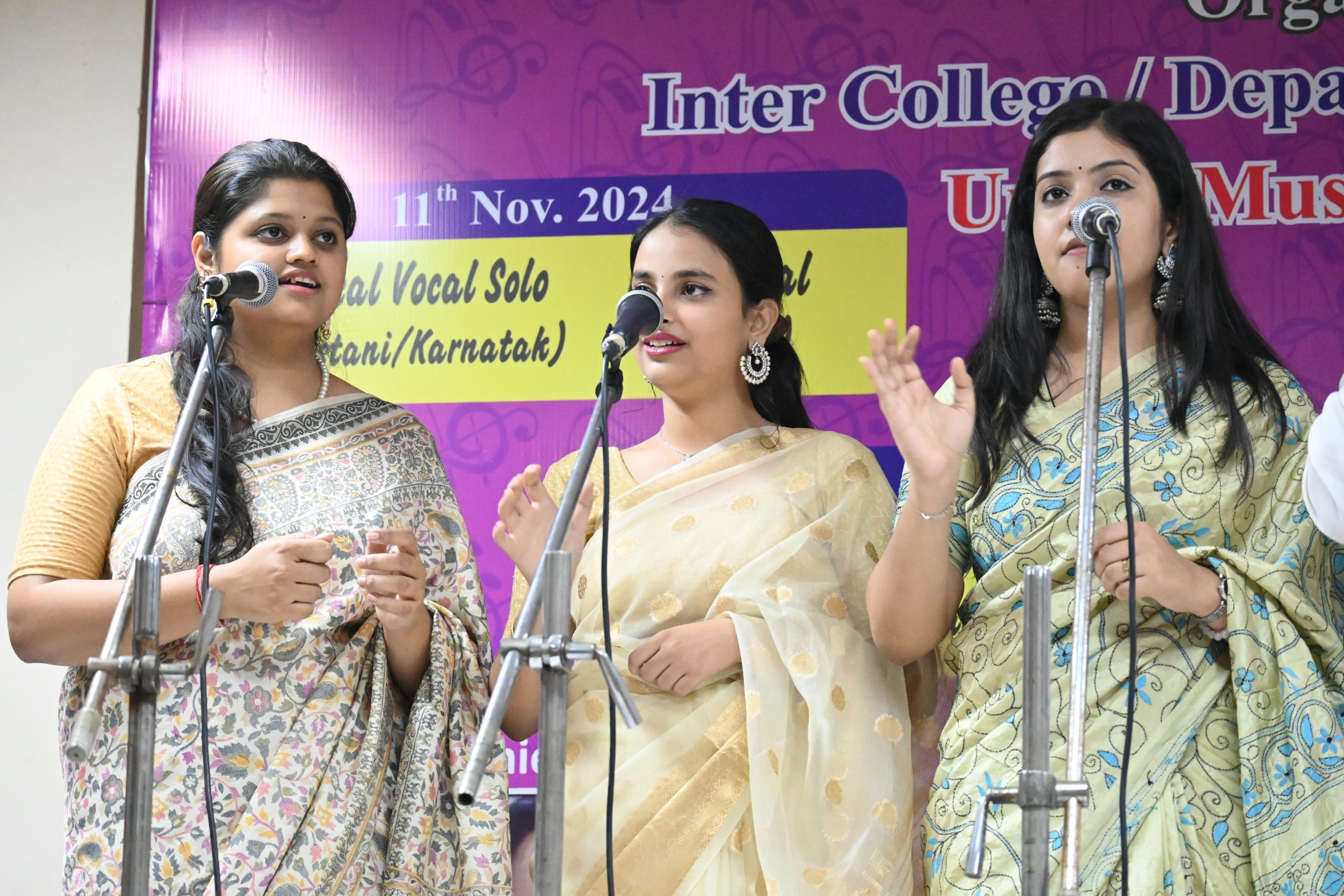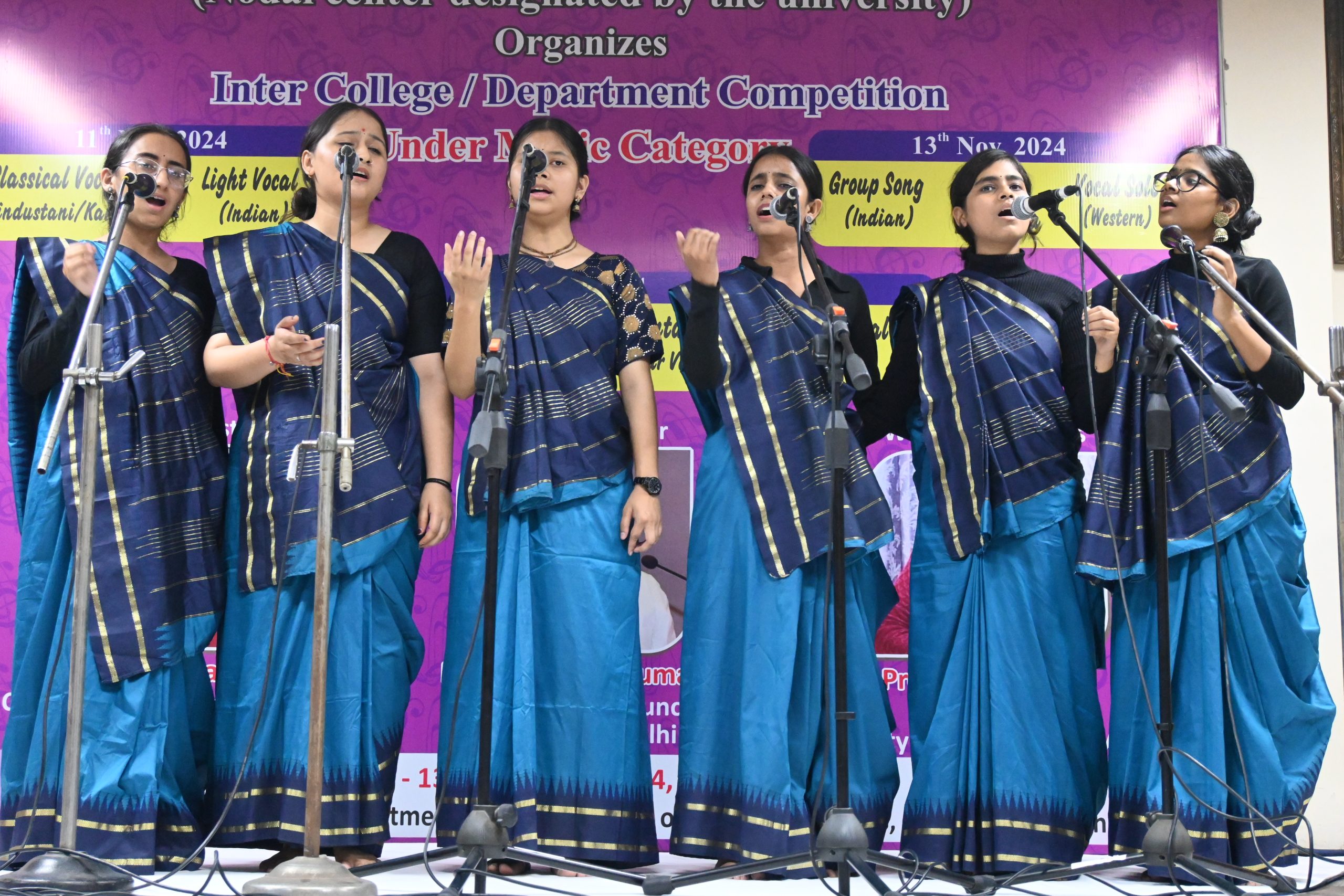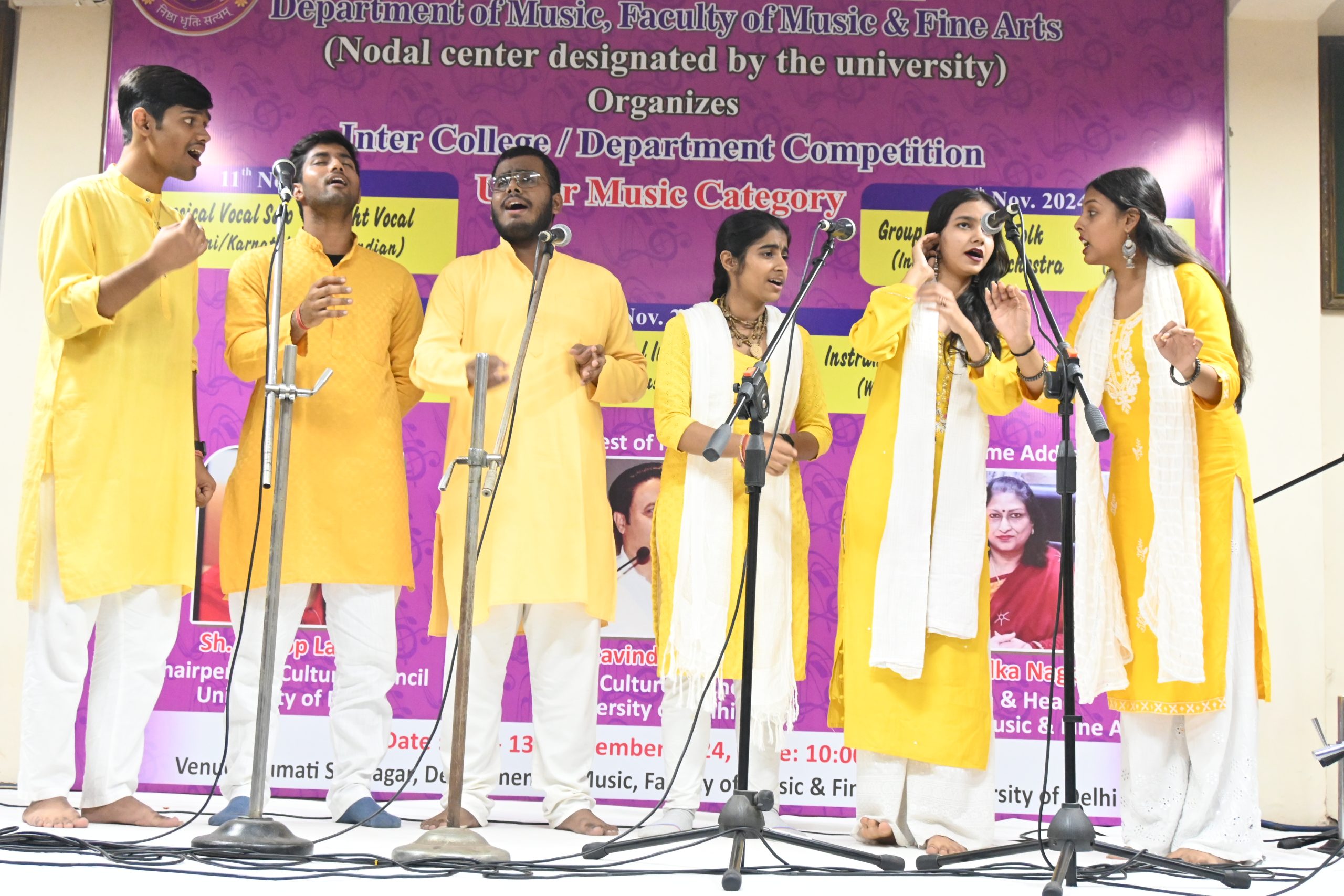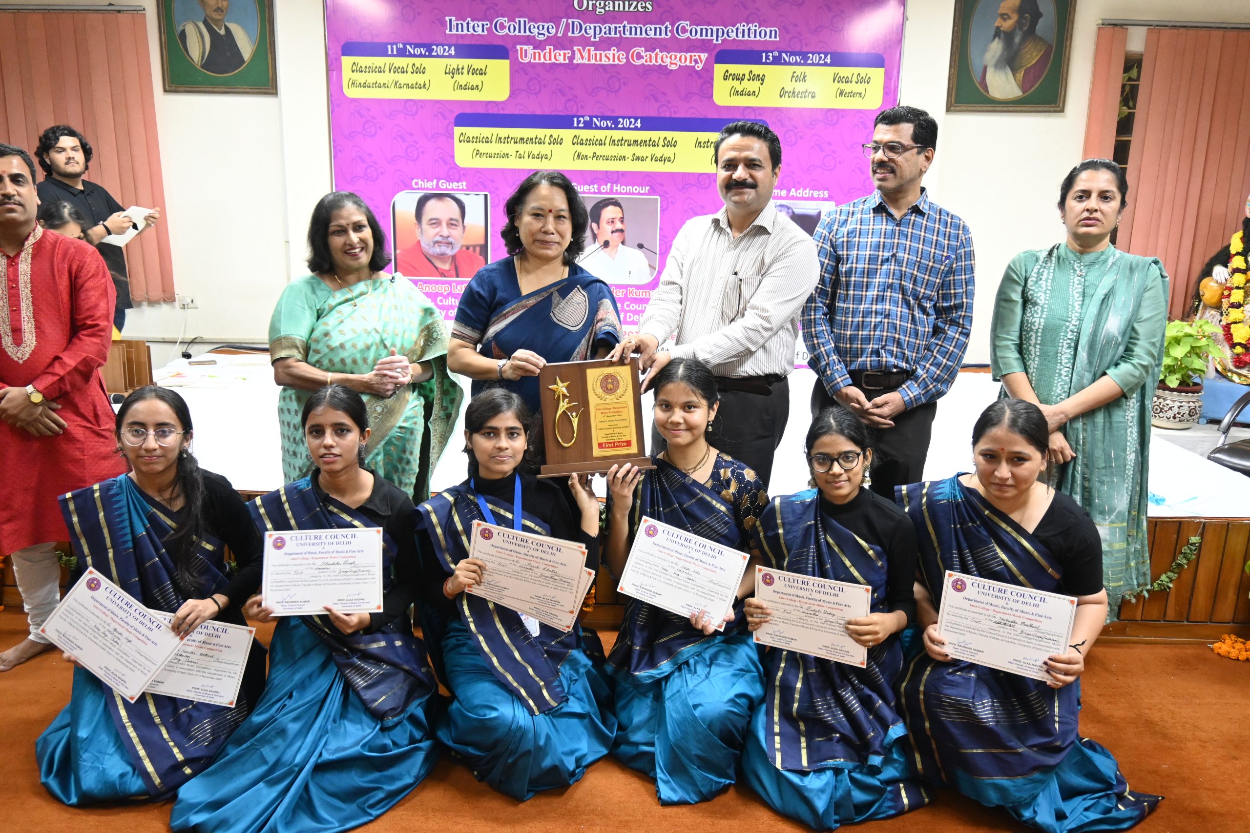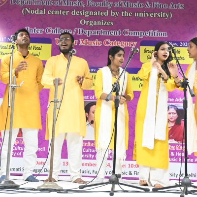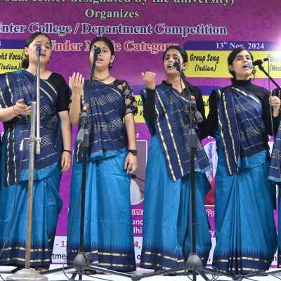 The three-day Inter-College Music Competition, organized by the Culture Council, University of Delhi, was successfully held from November 11 to 13, 2024, at the Sumati Auditorium, Faculty of Music and Fine Arts. The event saw enthusiastic participation from students across various colleges and departments, who showcased their exceptional musical talents across a range of Indian and Western genres.
