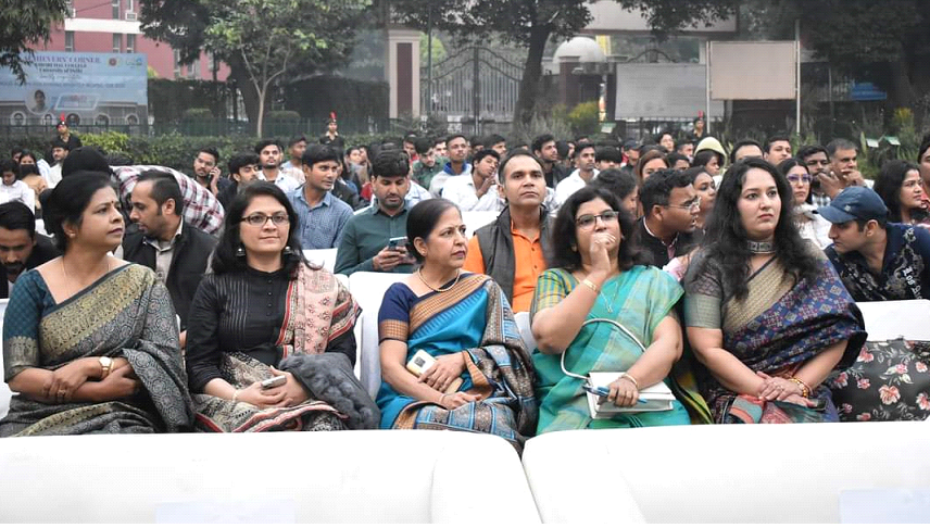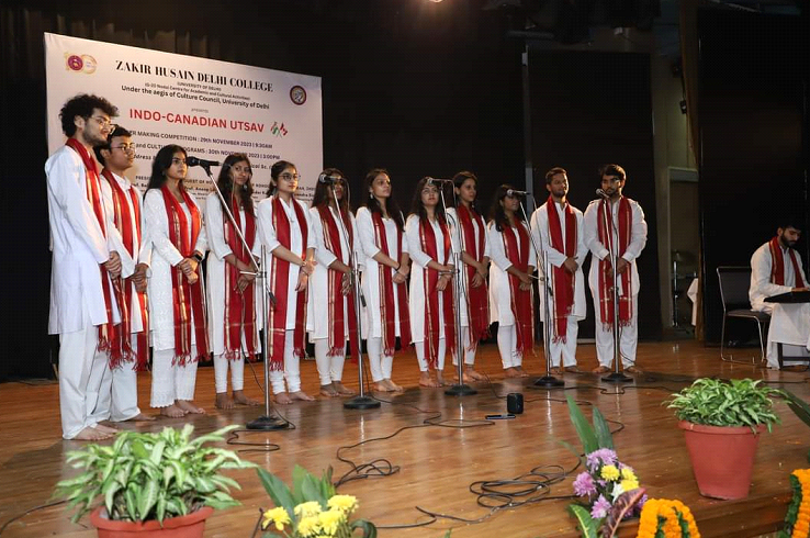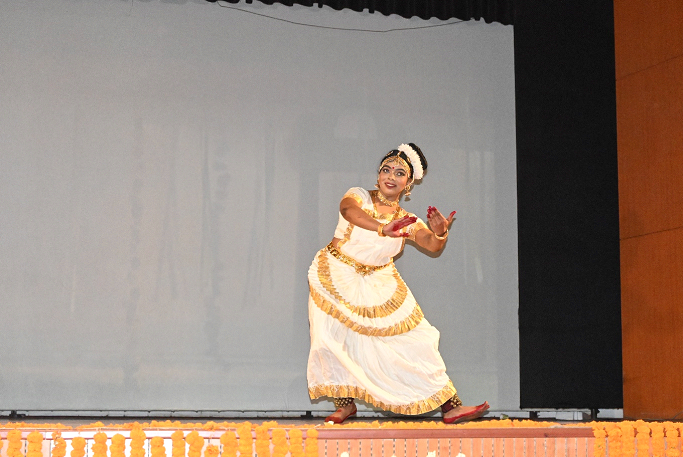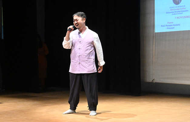 The session included lighting of the lamp by dignitaries, followed by a soulful recitation of Saraswati Vandana by the Indian Music Society. This was followed by Delhi University’s Kulgeet, composed by Shri Gajendra Solanki, and an Odissi recital by Ms. Mridula Naik, a student of IP College. A singing performance by Hyuingin An, a South Korean research scholar at the Department of Philosophy, University of Delhi, captivated the audience with Korean songs intertwined with Hindi. The K-pop dance by students from the Department of East Asian Studies and a Garba dance performance by students of Indraprastha College added to the event's vibrancy.