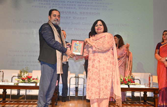 Prof. Chander Shekhar, Senior Professor and former Head, Department of Persian, welcomed the attendees and highlighted India's historical significance, once holding 40% of the world’s GDP. He attributed India’s current economic resurgence to the visionary leadership of Prime Minister Narendra Modi Ji, noting India's $4 trillion economy and improved lifestyles due to policy changes. Prof. Shekhar emphasized the importance of showcasing India’s rich civilization through such international platforms.